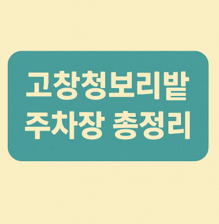 - 고창청보리밭 공식 무료주차장 위치: 청보리밭 입구 기준 도보 5분 거리 수용대수: 약 200대 특징: 선착순 이용, 조기 만차 주의